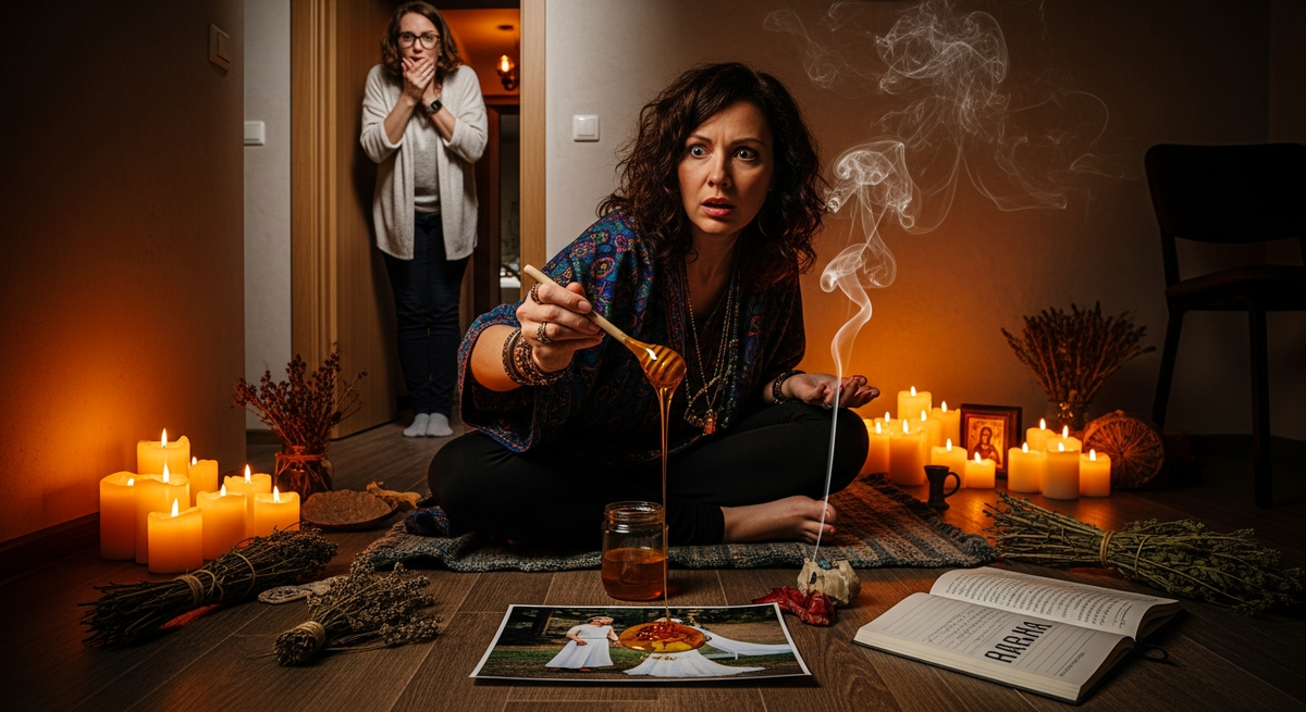 Марина сидела на полу, среди свечей и запаха ладана, и держала в руках липкую от меда фотографию. Перед ней сидела не коварная ведьма, не охотница за квартирой, а одинокая, немного нелепая женщина, которая не спала ночами, покупала дорогой мед, искала мак, читала свои наивные заговоры в тетрадке, рискуя показаться сумасшедшей.