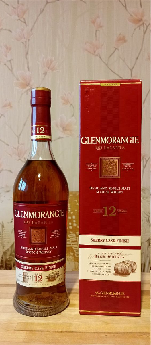 Всем привет от меня, КОньячного Маньяка и наших друзей! Продолжаю пробовать Глены из посылки Сергея. Самое то пробовать после Фиддика Моранджи! Хотя как раз с ним то я знаком: наливал мне Юрий когда то жётлой десятки, и уж конечно ничем она меня не впечатлила...Но тут не просто двенашка, а хересная...Гм... Glenmorangie по праву называют чемпионом среди односолодовых виски. Для его производства используется только шотландский ячмень, лишь слегка поджаренный. В процессе дистилляции применяется природная, высоко насыщенная минералами вода озера Тарлоджи. В 1989 году компания выкупила это озеро и прилегающие к нему 260 га земли, чтобы сохранить уникальный водный ресурс. Элегантный, насыщенный виски Glenmorangie Lasanta в течение 10 лет выдерживался в бочках из-под бурбона, изготовленных из американского белого дуба, после чего дополнительно созревал 2 года в бочках из-под хереса Олоросо из испанского города Херес. Название Lasanta в переводе с гэльского языка означает "тепло" или "страсть"