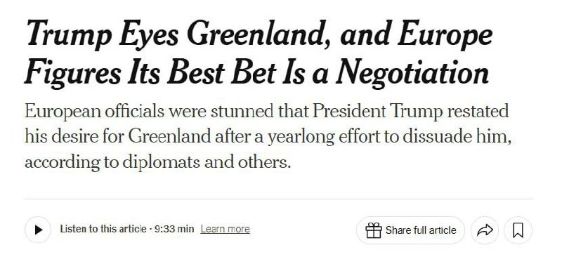 «Европа в панике из-за претензий Трампа на Гренландию», — NYT