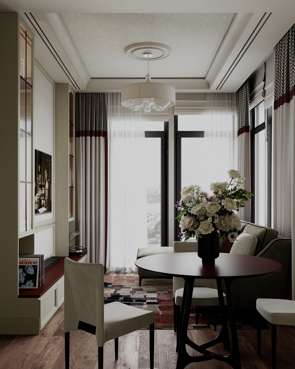 Совмещение кухни и гостиной в жилых интерьерах уже давно не только дизайнерское решение, но и функциональная бытовая необходимость. Просторное объединенное пространство дает множество вариантов его использования: здесь легко организуется комфортное место для отдыха, где можно принимать гостей, не отрываясь от готовки, или общаться с семьей, совмещая несколько домашних дел. Немного истории. Впервые такой вариант планировки появился во второй половине XX века в Европе и США, тогда на кухнях стали устанавливать все больше техники, цены на недвижимость росли и появилась необходимость использовать со смыслом каждый метр жилья. В нашей стране кухни-гостиные появились в середине 90х годов и стали быстро набирать популярность. Стили интерьера периодически сменяют друг друга, но отражение индивидуальности и запросов заказчика в пространстве всегда ложатся в основу дизайнерских и планировочных решений. В этом интерьере кухни-гостиной функциональность облачена в элегантность и уют. На небольшой п