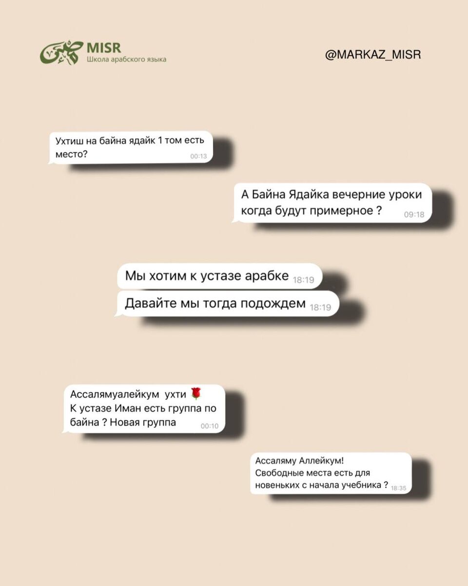 Мы уже отправили всем нашим преподавателям запросы, в какое время они могут взять группу, чтобы составить для вас график новых наборов. Будет ин шаа Аллах несколько новых групп с 1 тома 1 главы Байна ядейк. Работаем))