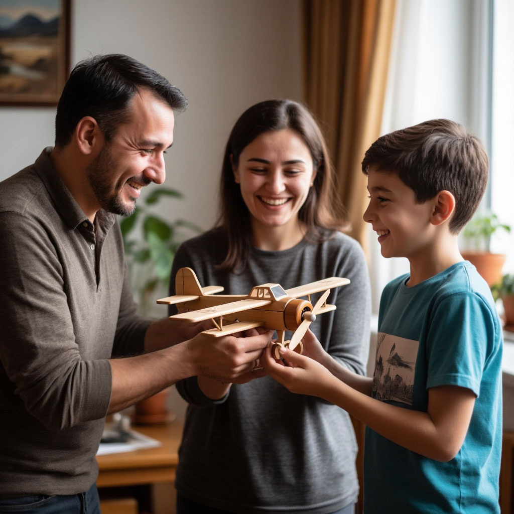 Самолётик поставили на полку, на самое видное место. Он стал не просто поделкой — символом. Напоминанием, что где‑то далеко, за высокими стенами, их ждут. И что однажды — обязательно — они снова будут вместе.