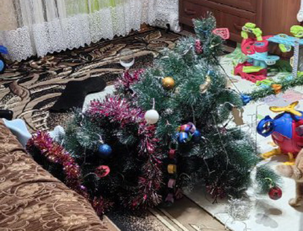 Новогодний апокалипсис: кот-злодей предпринял сокрушительный рейд и досрочно завершил праздники в сызранской квартире