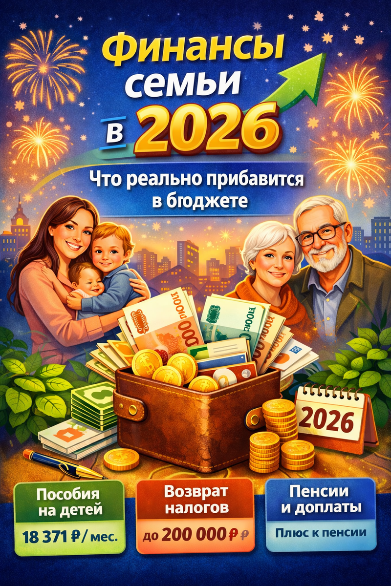 В 2026 году правила поддержки для семей и пенсионеров обновились: часть сумм начисляется автоматически, часть — по заявлению. Главное — понимать, на что можно рассчитывать и где не упустить своё. Разберём основные изменения простым языком. С начала года продолжает действовать единое пособие на детей. Его размер зависит от доходов семьи и может составлять 50%, 75% или 100% прожиточного минимума на ребёнка. В среднем по регионам это: Для беременных женщин, вставших на учёт на ранних сроках, предусмотрена отдельная поддержка — сумма также зависит от дохода семьи. 💡 Важно: во многих случаях пособие пересчитывается автоматически, без повторной подачи документов. В 2026 году появляется семейная налоговая выплата — новый формат поддержки для семей с двумя и более детьми. Речь идёт не о вычете, а о возврате части ранее уплаченного НДФЛ.