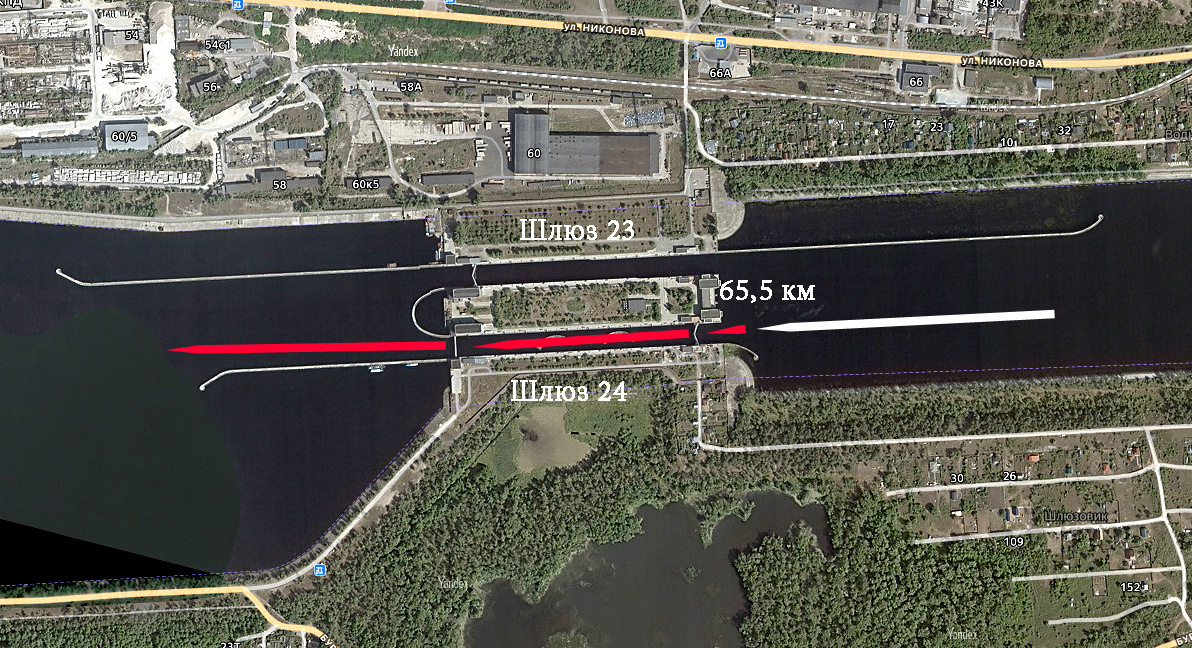 В предыдущей статье мы расстались с Вами, уважаемые читатели, перед шлюзами №№23/24 в нижнем бьефе Жигулёвского гидроузла. Во время своих путешествий по Волге я проходил их на круизных теплоходах 10 раз (из них 8 раз – и вверх, и вниз по течению, 2 раза – только в одну сторону), и наблюдать процесс шлюзования мне всегда было интересно. Правда, несколько раз я пропустил шлюзование из-за того, что шлюзы проходили глубокой ночью, а я просто проспал эту процедуру. В круизе 2025 года шлюзы проходили в обоих направлениях. В этом цикле статей о маршруте круиза-2025 про оба перехода из одного бьефа в другой расскажу в одной заметке, так, мне думается, нагляднее будет представлена работа шлюза. Судоходные шлюзы Жигулёвского гидроузла были построены в 1951-1955 годах у левого берега Волги. Шлюзы двухкаскадные, двухниточные, однокамерные. Нижний каскад (нижние шлюзы №№23/24) расположен в нижнем бьефе гидроузла, в верхнем бьефе (через 4 километра) находятся верхние шлюзы №№21/22. Разделены шлюзы п