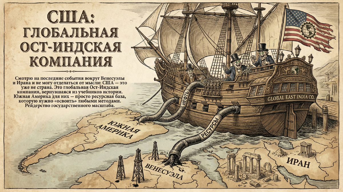 Смотрю на последние события вокруг Венесуэлы и Ирана и не могу отделаться от мысли: США — это уже не страна. Это глобальная Ост-Индская компания, вернувшаяся из учебников истории. Южная Америка для них — просто ресурсная база, которую нужно «освоить» любыми методами. Рейдерство государственного масштаба. И на этом фоне позиция России выглядит... скажем прямо, беззубо. Мы словно застряли в 1945 году. Мы всё еще апеллируем к Ялтинской системе, к ООН, к международным договорам. Мы боимся реагировать, боимся назвать вещи своими именами, прячась за дипломатическими формулировками. Но правда в том, что наши «партнеры» давно используют эти договоры как туалетную бумагу. Пока мы верим в силу чернил на бумаге, они верят в силу давления и переворотов. Не пора ли перестать быть наивными идеалистами и начать отстаивать свои интересы так же жестко? Или так и будем ждать, пока «международное право» нас защитит? Что думаете? 👇 #Геополитика #Мнение #США #Венесуэла #Россия #История