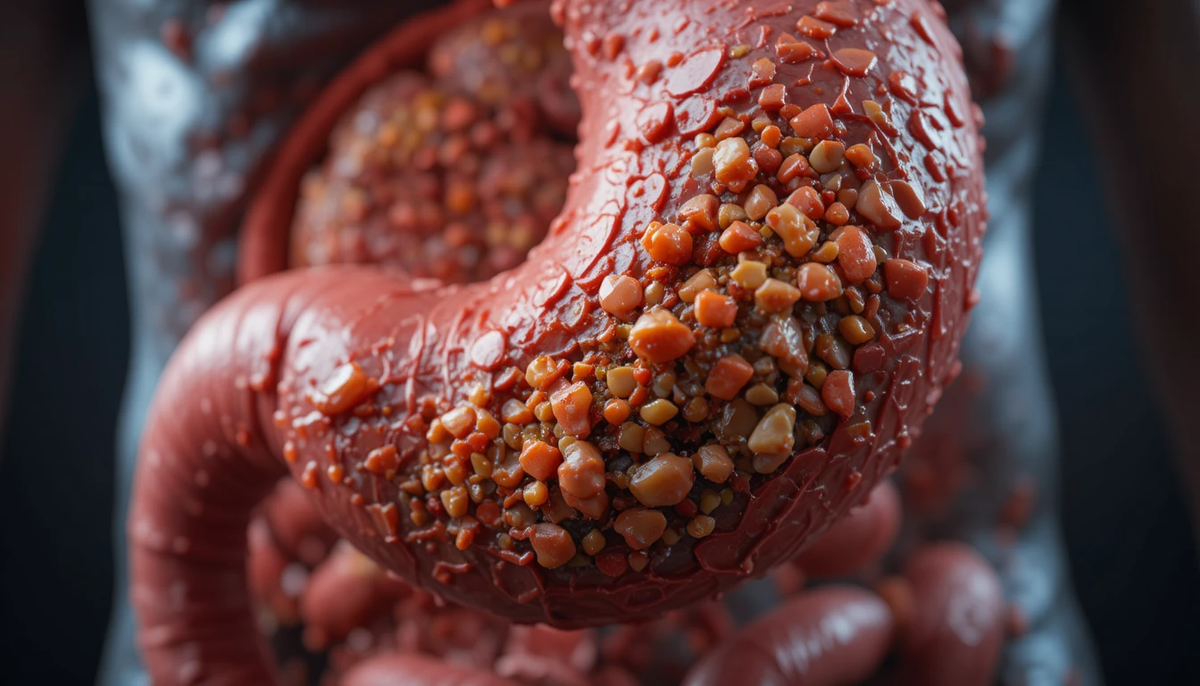 ◾ Тяжесть без причины После быстрой еды желудок словно замирает. Нет резкой боли, но появляется странная неподвижность, кислая отрыжка, ощущение, что пища не идёт дальше. Человек списывает это на переедание или спешку, не подозревая, что причина глубже — в самом составе того, что лежит на тарелке. ◾ Плотный комок Большинство ультра-переработанных продуктов проходят жёсткую обработку: сушку, нагрев, пропитку маслами и стабилизаторами. В результате пища становится механически плотной и плохо смачивается желудочным соком. Ферменты работают вхолостую, а содержимое желудка задерживается дольше нормы, нарушая моторику и выработку гастрина. ◾ Кислотность вхолостую Консерванты и стабилизаторы обладают буферным эффектом. Желудок вынужден вырабатывать больше кислоты, чтобы добиться нужного pH. Часть этой кислоты тратится не на переваривание, а на нейтрализацию добавок. Слизистая раздражается, воспаление нарастает, а ощущение тяжести становится привычным фоном. ◾ Женский перекос У женщин с хрони