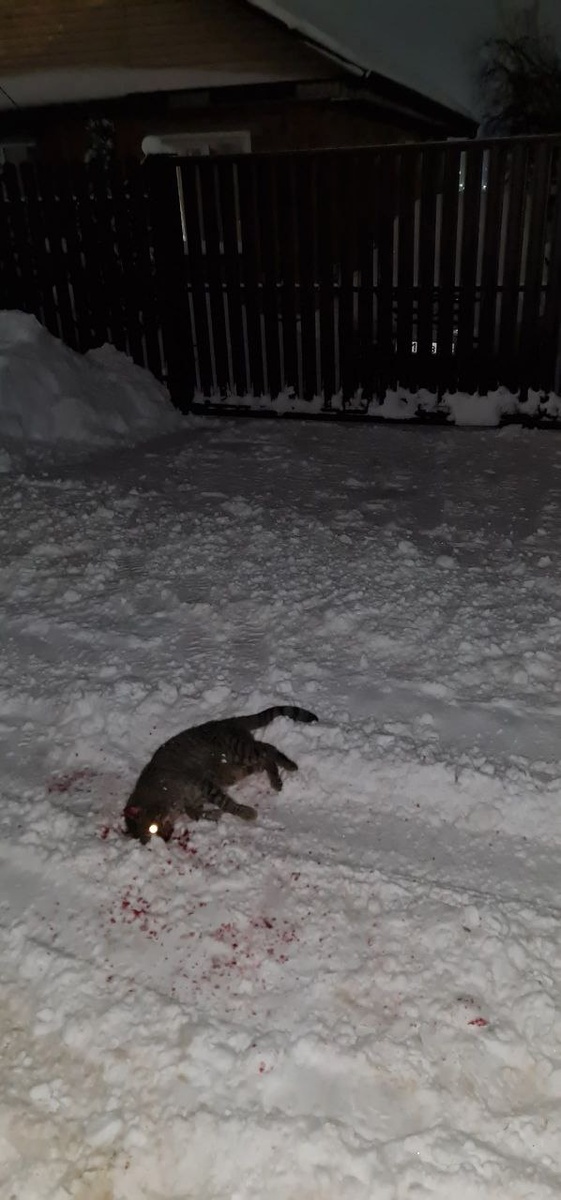 Добрый вечер. Вот так вот люди поступают с животными. Сбили. Бросили. Уехали. Так ещё и под чужими воротами. Неужели мужества не хватило,хотя бы за собой убрать. Вот ваша сущность вся. Главное не забывайте о бумеранге.