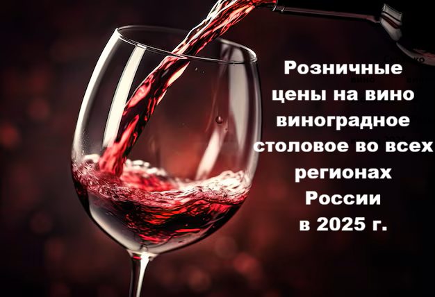 Средние розничные цены на вино виноградное столовое в разных регионах России в 2025 г.
