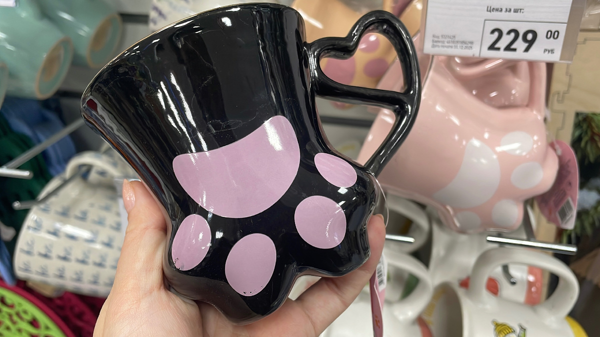 Начну с самых милых кружек за 229₽ в форме лапки, объем 280 мл.