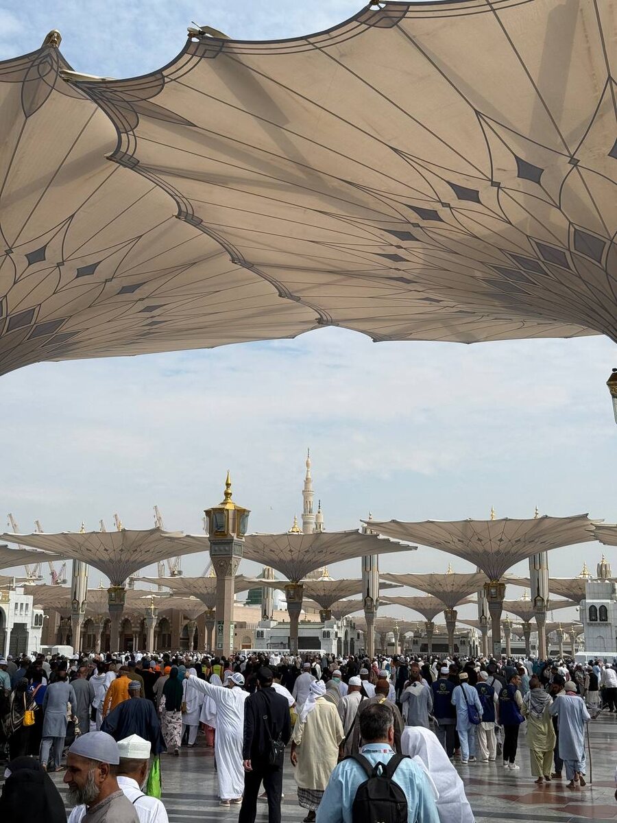 Мечеть Пророка - главная святыня Медины и одна из самых почитаемых мечетей мира. Именно здесь находится могила пророка Мухамеда. Огромные складывающиеся зонты от солнца делают ее облик очень узнаваемым. Мечеть - закрытая территория для немусульман. Войти внутрь, а также попасть в прилегающую священную зону могут только мусульмане. Однако сам город Медина, в отличие от Мекки, открыт для всех. Немусульмане могут свободно гулять за пределами территории мечети. Даже если войти в мечеть нельзя, атмосфера Медины всё равно остаётся сильным и очень особенным впечатлением.