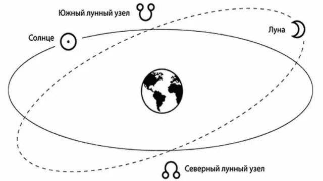 Лунные узлы — не физические тела, а математические точки пересечения орбиты Луны с эклиптикой (плоскостью орбиты Земли вокруг Солнца). В астрологии они считаются важнейшими кармическими ориентирами.