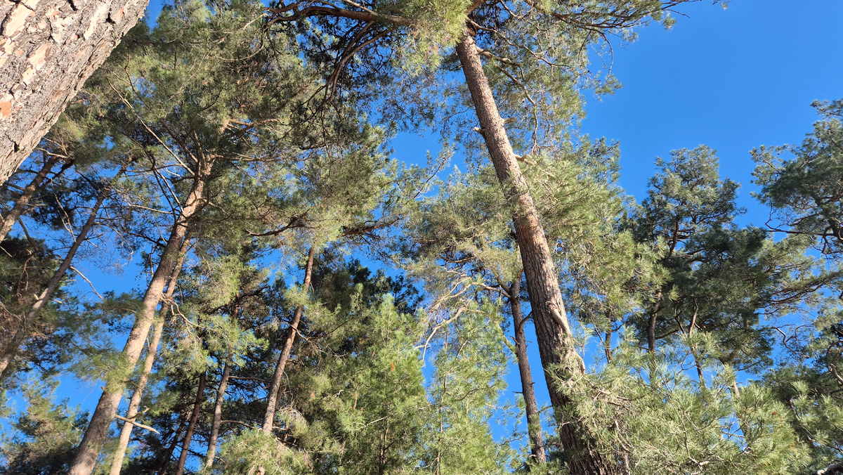 Огромные деревья на 40 метров подняли развесистые кроны. Много на Кавказе света, поэтому сосны широко раскинули ветви. Толстые стволы у многих деревьев изогнуты. Вот толстая сосна, пользуясь свободным местом, склонилась к солнцу, а когда с южной стороны выросла молодая соседка и заслонила свет, старая сосна подалась на север, её ствол навсегда остался изогнутым.