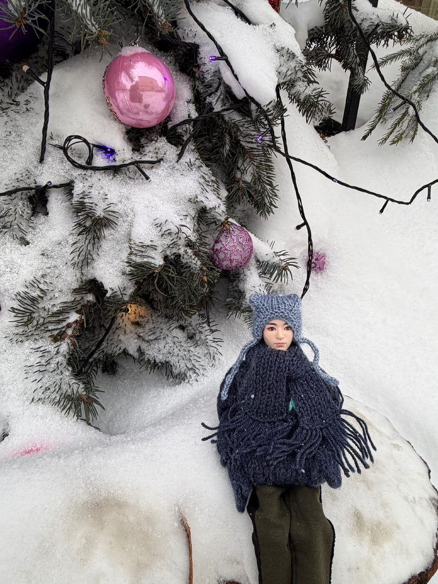 На исходе праздников выбрались погулять в центр, правда погода была максимально неудачная- сильный ветер, снег, холод.