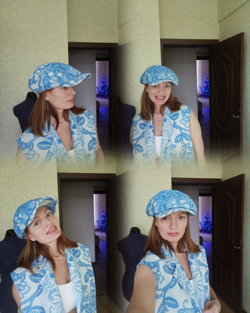 Жалко было-бы просто выбросить кусочки покрывала, которые остались от пошива жилетки. Я РЕШИЛА сшить из них модную кепку ХУЛИГАНКУ..