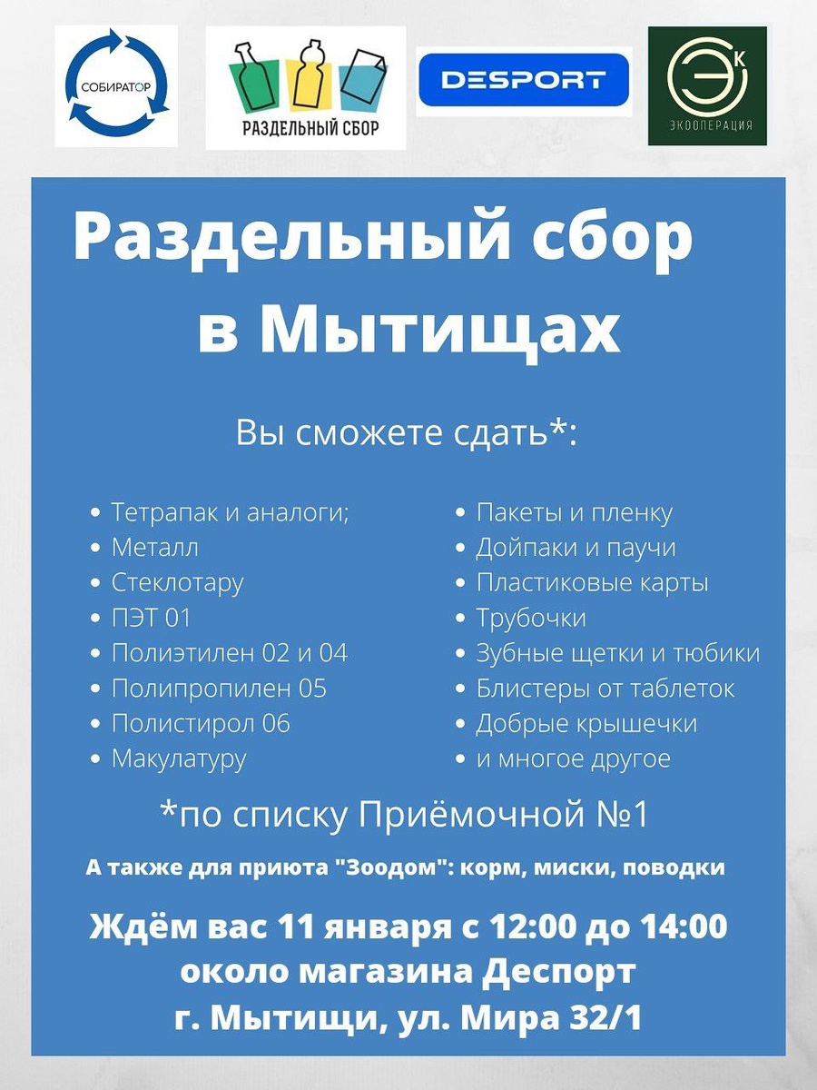 Не смотря на погодные условия, завтрашняя акция в Мытищах состоится! Но зоны реюза не будет. 😢