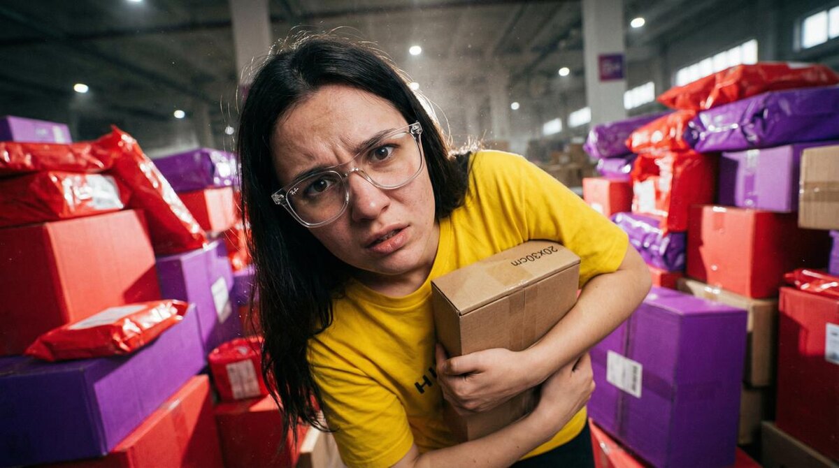 Сотрудник пункта выдачи орёт в камеру. Голос срывается. Перед ним — пять тысяч коробок детских товаров. На один адрес. «Это моя последняя смена, я сюда больше не приду!» — кричит парень, и в его интонации столько отчаяния, что становится не по себе.