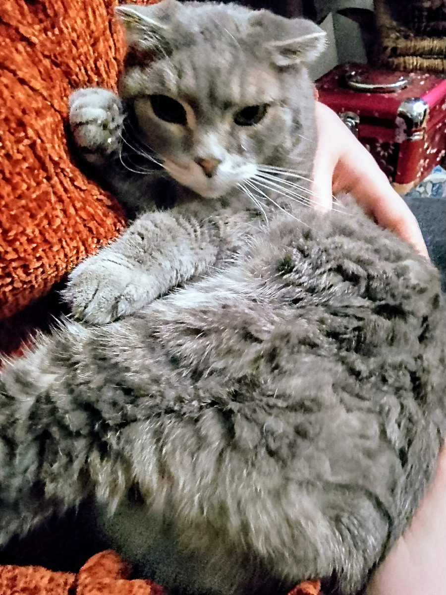 Ее просто понесли в клинику усыплять и бросили там как ненужную вещь. Нормальную ласковую кошку, которой ещё жить и жить. Хорошие анализы это подтвердили, кстати. Даже почки в порядке. Единственный нюанс, который по крови выплыл, — это низковатый гематокрит (25) и немного сниженные ретикулоциты. Будем с этим разбираться. Но, думаю, чуть позже. Нужно дать девочке время на адаптацию. Ей пришлось за одну неделю дважды переезжать. Врач, опекавший Соню в клинике, тоже просила дать кошке выдохнуть. Думаю, что через неделю-другую сделаем УЗИ (мб и эхо сердца). И ока надо будет пересдать. А пока нам велели кое-какие укольчики для улучшения кроветворения поделать. И омегу попить. И, конечно, обезбол для лапок: новый препарат, состоящий из габы и человечьего антидепрессанта на букву "т". То, что кошке на нём очень кайфово, это факт. Но я немножко опасаюсь за побочки. Может, одной габы хватило бы? Не знаю. Пока буду давать то, сил прописали. Эта штука и боль снимает, и тревогу, и успокаивает знатно.