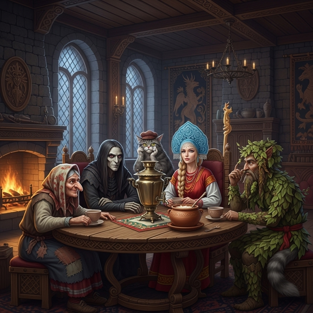 Теперь я точно в сказку попала: Яга, Кощей, Леший, кот Баюн-Учёный, и я.