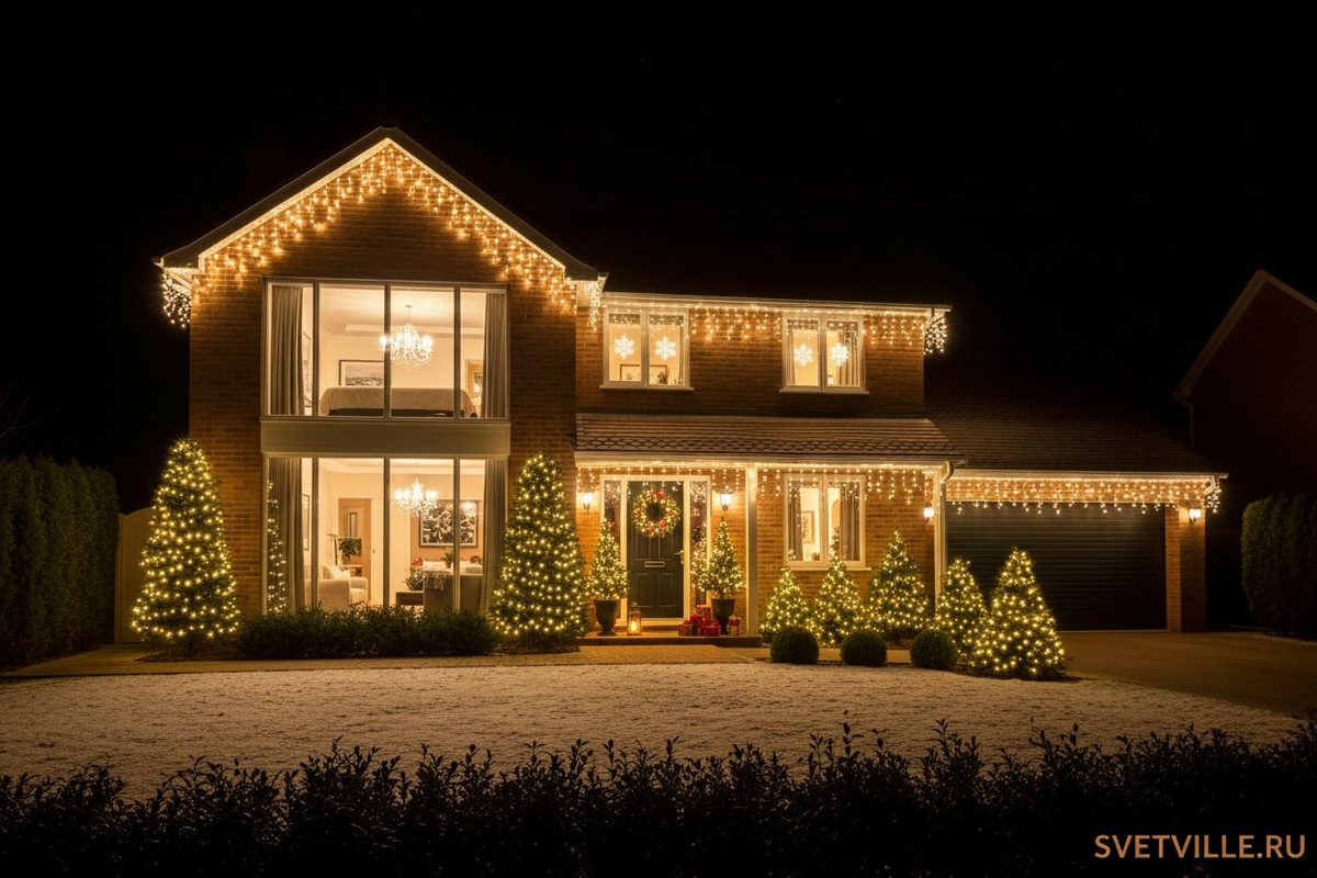 Новогодняя подсветка дома в Москве, СПБ и области