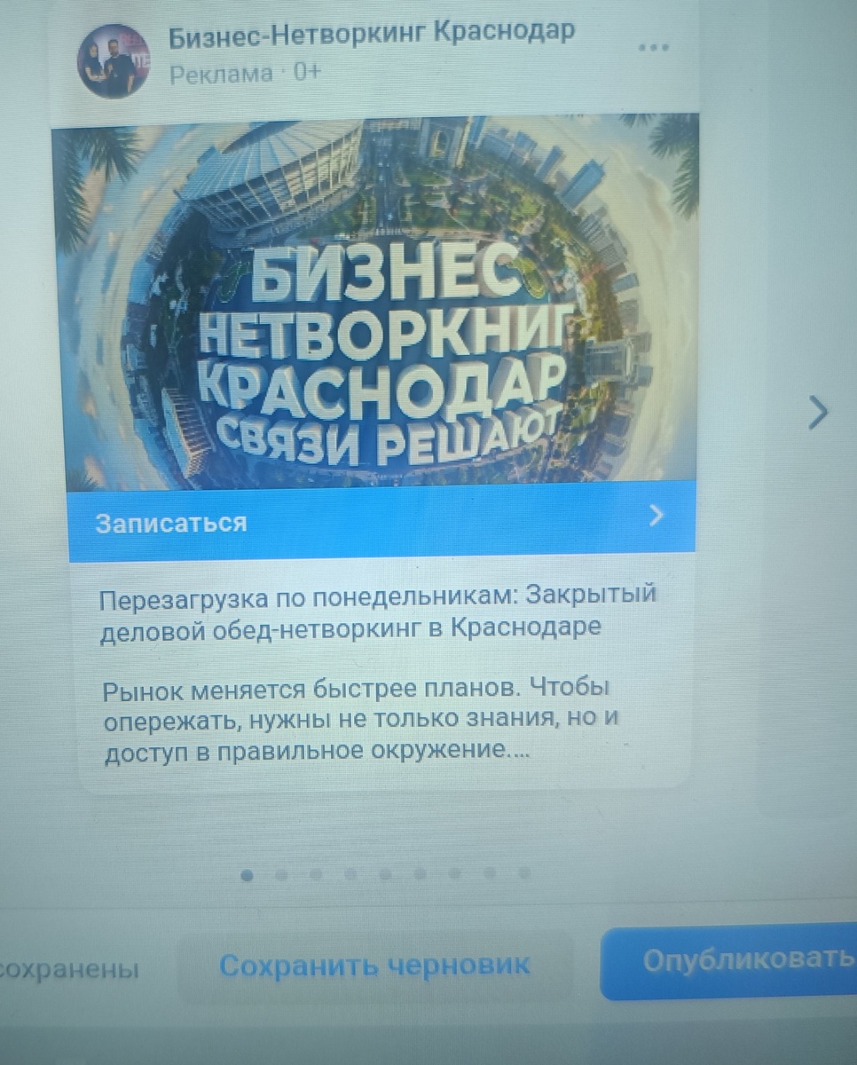 Работал во благо сообщества. Всё встаёт на свои места.✨ И я не избежно росту в своем блоге. Я погрузился в рекламный кабинет ВК и осознал мощь таргета. Особенно в Краснодаре, особенно по вечерам. Это работает на 200%. Сам постоянно ловлю себя на мысли: «О, куда сходить?» — и кликаю на рекламу мероприятия. И ведь иду! И многие так делают. Поэтому родилась идея — настроить всё у себя. Сначала хотел отдать эксперту, но… 🎁 Случайно наткнулся на акцию: бесплатная настройка + бюджет на рекламу. Решил — судьба. «Давайте попробую сам», — подумал я. И знаете что? Всё получилось. Всё настроил своими руками. Один маленький нюанс — техподдержка ВК сейчас не работает. Но это не страшно. В ПОНЕДЕЛЬНИК меня ждут по той самой акции. Я возьму у них бесплатную консультацию и тогда — старт. Это для меня — новый уровень. К которому я шёл долго. И вот он. Так что в этом году будут и мои оффлайн-мероприятия. Но они будут без спикеров. Это живое ВК/YouTube-шоу с гостями — организаторами самых кр