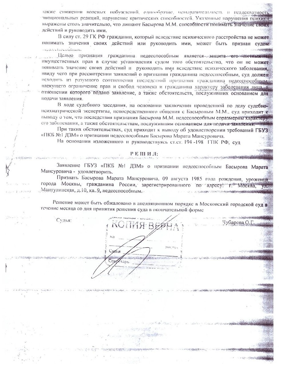 Сейчас нахожусь в заключении по оговору своего отца, уже очень давно, с сентября 2017 года. Через два года стал вести неустанную борьбу за свою жизнь и свободу, за восстановление своих гражданских прав, которых меня так бессовестно и безапелляционно лишили в январе 2018 года, Нагатинским районным судом г.Москвы. Решение приняли заочно (без меня) не разбираясь в деталях происшедшего... Я изучал ГПК РФ (гражданско - процессуальный кодекс) и в нём чётко прописано, что суд обязан принимать во внимание обстоятельства при которых произошла беда, и события ей предшествующие. Ничего такого сделано не было. Мой отец проживающий по адресу г. Москва ул. Мантулинская д.10, 1-ый под. кв.9 семейный тиран и психопат на протяжении многих лет избивавший меня, и доведший до самоубийства (статья 110 УК РФ) ловко тогда выкрутился, было это в октябре 2000 года, мне тогда было 15 лет, он сильно настучал мне по голове за то что я не мог решить уравнение по алгебре, дал мне 30 минут, и сказал что если я не решу уравнение, то он изобъет меня ещё раз. Я не выдержал, и выпрыгнул из окна своей комнаты, с третьего этажа, сломал левый гольностоп в двух местах. На это сбежался весь двор, были очевидцы... Меня увезли в СКЛИФ... Родители тогда сильно перетрухали, подсунули мне какую то бумажку, где я своей рукой написал: "от судмедэкспертизы отказываюсь". Отец мне тогда сказал что я могу забыть про битьё... Его хватило меньше чем на три месяца. Он продолжил избивать меня, делал это ещё 13 лет... Параллельно с этим, шла психологическая обработка что "милиция заявления на родственников не принимает." И это только один из множества эпизодов его психопатии. А помимо этого было ещё разбивание стеклянных бутылок об плечи, плевание в лицо, и несусветные гадости в мой адрес, гадости которые не имели ко мне никакого отношения (моральные унижения). Находясь в застенках я, с апреля 2021 года развернул обширную оправдательную деятельность, где подробно рассказываю как всё было на самом деле. Создаю объёмные посты аудио и видеозаписи доказательств выпиющего произвола и правонарушений со стороны администрации и департаментов. Их оружие это коллективная клевета и круговая порука. Единственное, чего они боятся, это огласки.
