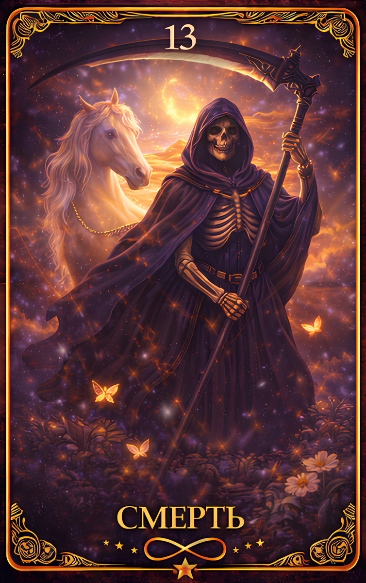 АРХЕТИП ДНЯ 🔮 11 января 2026 года 🔮 🔅 Смысл дня: Неминуемая трансформация как дар 🔅 11 января — день мощной, необратимой трансформации, которая является прямым следствием внутреннего решения, принятого под звуки СУДА. Архетип СМЕРТИ — это не физический конец, а алхимический процесс: то, что больше не соответствует вашему обновленному «Я», должно быть окончательно отпущено, чтобы освободить жизненную силу для нового цикла. 🧿 Ключевые темы дня: ✅ Окончательное отпускание: Если Повешенный — это размышление о жертве, то СМЕРТЬ — это сам акт жертвоприношения. День, когда цепляться за отжившее становится болезненно и бесполезно. Это может касаться привычек, отношений, проектов или ментальных установок. ✅ Трансформация ради роста: На карте Таро мы видим, как заходящее солнце символизирует конец цикла, но взошедшее солнце на знаменах — уже начало нового. Боль трансформации сегодня — это боль роста. Она очищает пространство для того, что будет соответствовать вашей истинной СИЛЕ. ✅ Нейтра