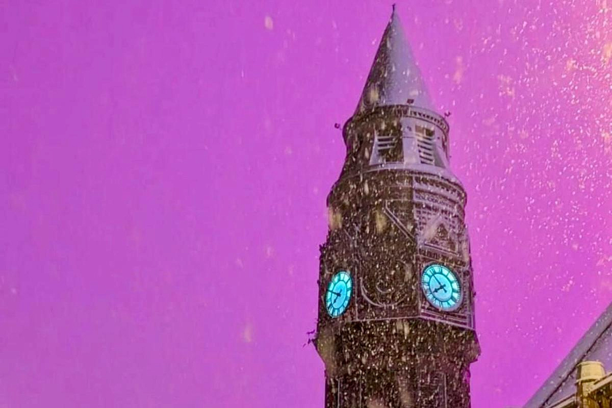 версиями про «северное сияние» и ИИ, но объяснение оказалось простым: розовый свет от стадиона отразился в снегопаде и облачности.