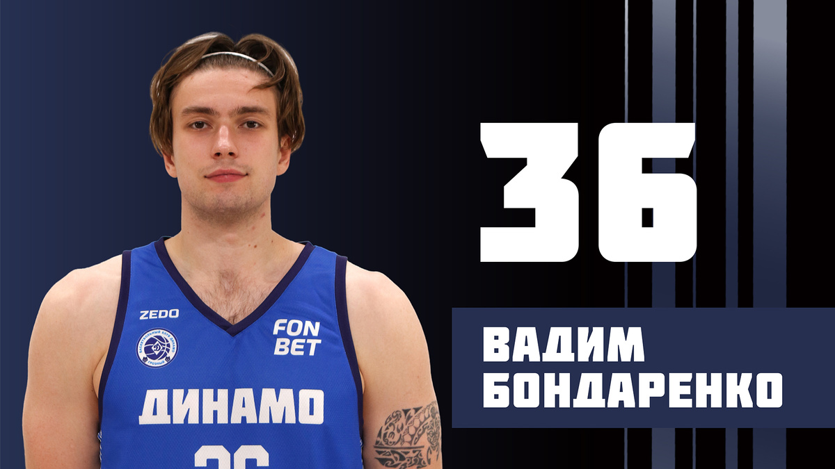#36 Бондаренко Вадим Сергеевич БИОГРАФИЯ Бондаренко Вадим Сергеевич - профессиональный баскетболист, выступает на позиции атакующего защитника, мастер спорта, рост - 190 см, вес - 95 кг, 25 лет, г.Москва. Карьеру начал в 2018 году, за 7 лет отыграл 219 игр, набрал 1928 очков, г/п 718. Выступал за различные российские клубы: сезон 2018/2019 "ПАРМА-2", 2018/2019 - "ПАРМА", 2019/2020 - "ПАРМА-2", 2019/2020 - "ПАРМА", 2020/2021 - "ПАРМА-ПАРИМАТЧ", 2020/2021 - "ПАРМА-М", 2021/2022 - "Юпитер", 2022/2023 - "Нефтехимик", 2023/2024 - "МГАФК", 2023/2024 - "ЦСП - Химки", 2023/2024 - БК "Московский", 2023/2024 - "МГАФК", 2023/2024 - "ЦСП - Химки", 2023/2024 - "ВОСТОК", 2024/2025, 2025/2026 - "Динамо" (Грозный). В сезоне 2024/2025 сыграл 36 игр, набрал 221 очка, г/п 91. В 2024 году Бондаренко перешел в «Динамо» (Грозный). Контракт с ним был продлен на сезон 2025/2026. В клубе выступает под номером 36, на позиции атакующего защитника.