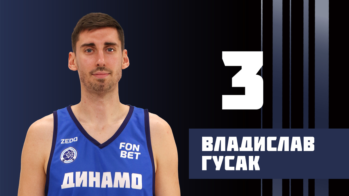 #3 Гусак Владислав Александрович БИОГРАФИЯ Гусак Владислав Александрович - профессиональный баскетболист, выступает на позиции легкого форварда, рост - 200 см, вес - 93 кг, 30 лет, г.Ростов-на-Дону. Карьеру начал в 2014 году, за 11 лет отыграл 213 игр, набрал 1974 очка, г/п - 296. Выступал за различные российские клубы: сезоны 2014/2015, 2015/2016 - "Тегас", 2021/2022, 2022/2023, 2023/2024, 2024/2025 - "БАРС-РГЭУ", 2025/2026 - "Динамо" Грозный. В сезоне 2024/2025 сыграл 38 игр, набрал 225 очков, г/п - 44. В 2025 году Гусак перешел в «Динамо» (Грозный). Контракт с ним был заключен на сезон 2025/2026. В клубе выступает под номером 3, на позиции легкого форварда.