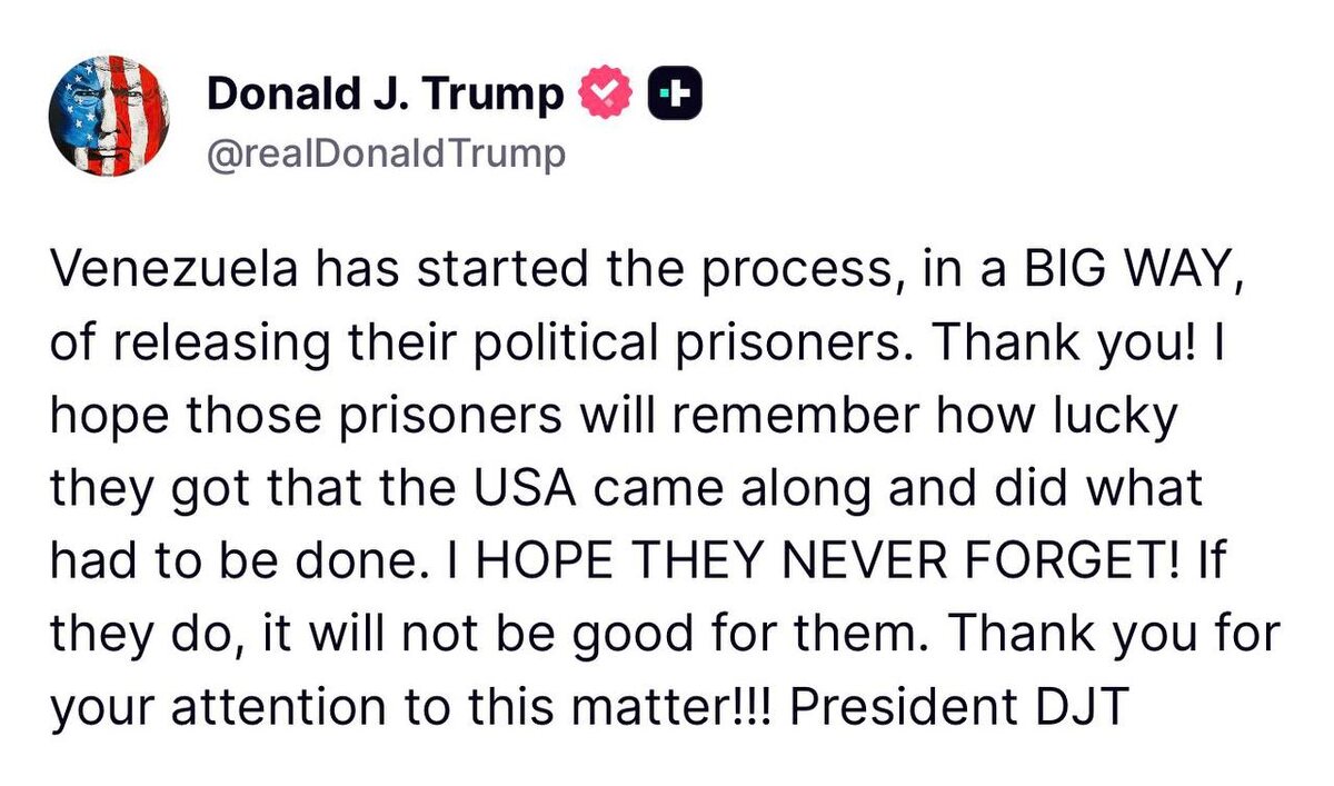 TRUMP: ‘Venezuela has started process, in a BIG WAY, of releasing their political prisoners