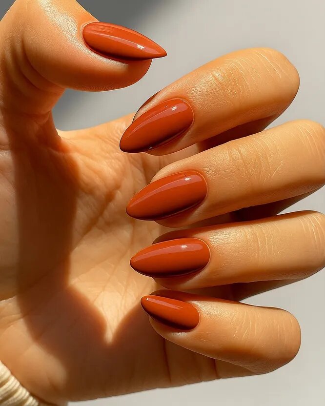 16 трендовых идей маникюра в терракотовом цвете на январь 2026 года