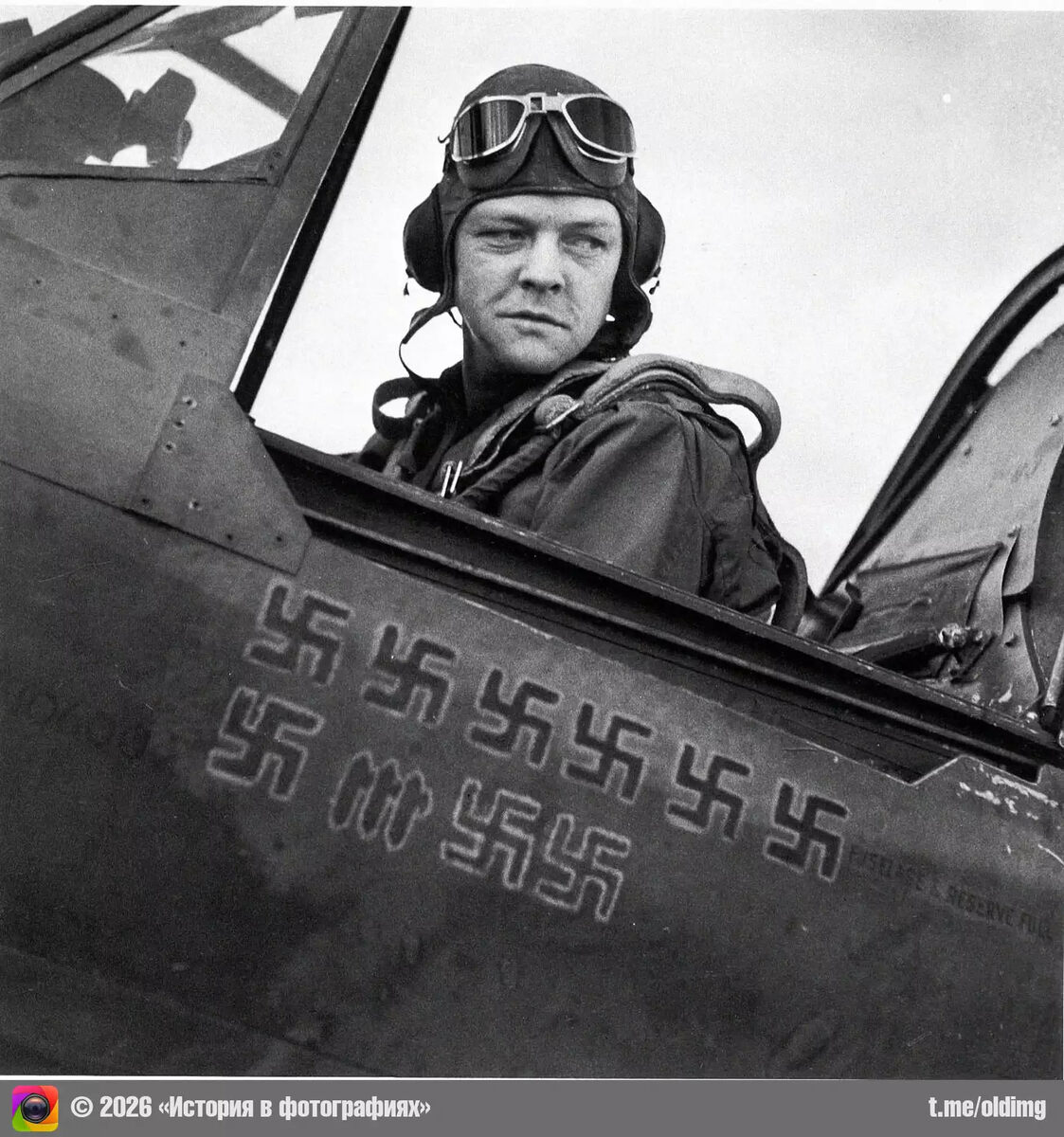 1943 год. Тунис. Пилот 58-й эскадрильи 33-й истребительной группы ВВС США Леви Чейз в кабине своего истребителя