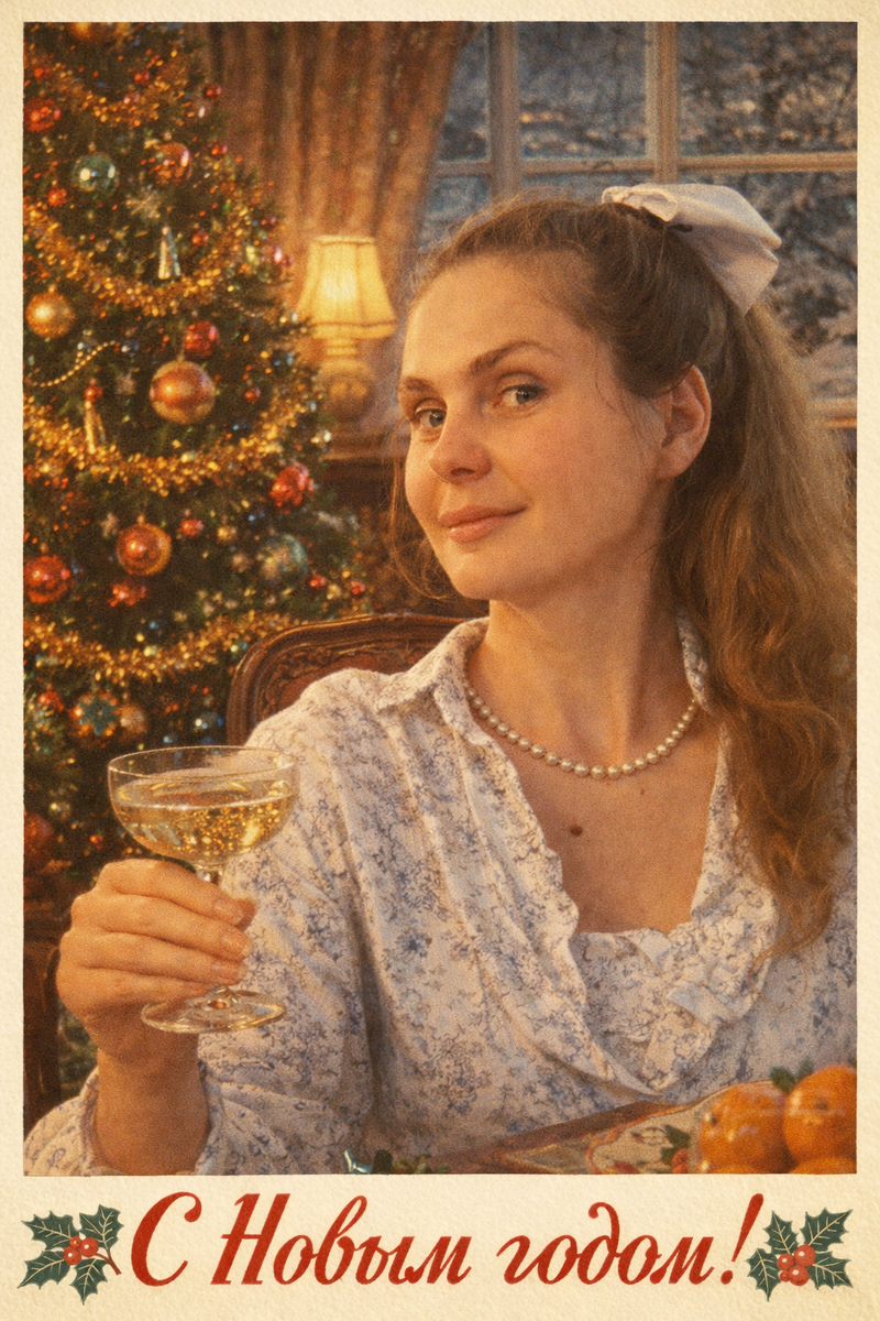 И вот в одной из них перед новым годом был тренд создания фото своей семьи в стиле новогодних открыток времен СССР с помощью ИИ.