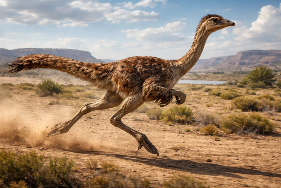 Гарудимим же был мастером другого уровня — уровня земли и скорости. Его стратегия выживания была основана не на конфронтации, а на избегании. Высокий рост (около 2-2.5 метров в высоту при длине до 4 метров) и, вероятно, большие глаза, расположенные по бокам головы, давали ему отличный круговой обзор, позволяя рано замечать угрозу. А затем в дело вступали те самые ноги. Способность развивать высокую скорость (точные цифры являются предметом споров, но явно выше, чем у среднестатистического хищника его размеров) и, что не менее важно, поддерживать её на длинных дистанциях, была его главным оружием. Он мог оторваться от преследователя, выиграть время и скрыться в открытых ландшафтах, которые, судя по геологии формации, напоминали полузасушливые равнины с речными долинами и редкой растительностью — идеальный полигон для бегуна.