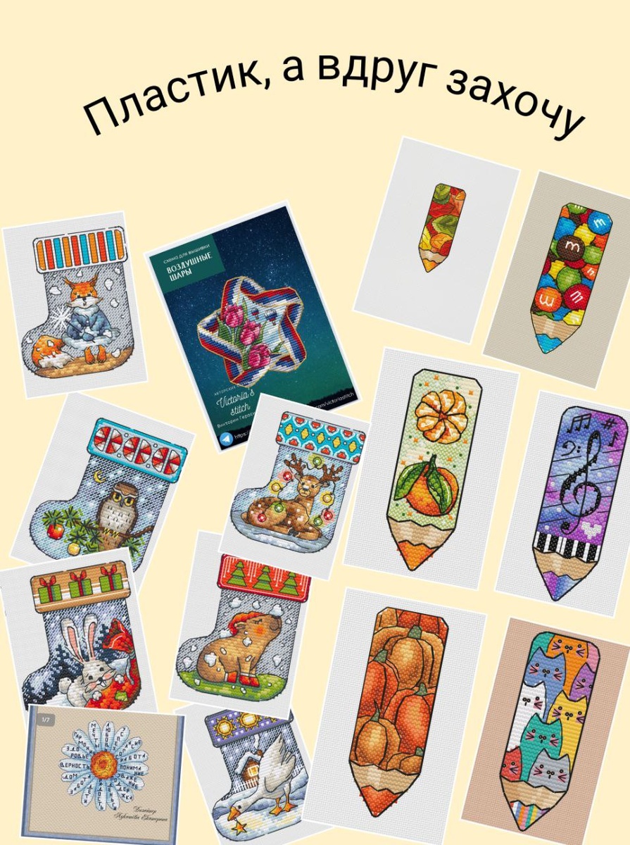 Привет мои дорогие!!! Меня зовут Наташа, и я с огромным удовольствием занимаюсь вышивкой. Рада представить вашему вниманию мой дневник вышивальщицы. Что то в этом году я растянула удовольствие с составлением вышивального плана. Это статья уже скорее не план, а визуализация и напоминание самой себе, что мне есть, что вышивать и из чего выбирать. Вышить это все я конечно не планирую, но перед глазами пусть будет, если вдруг меня потянет налево 🤣. Давайте с вами быстренько пробежимся и посмотрим чего я себе тут набросала. Начнем с валенок от А. Петуново и Е. Ларцовой. Если вдруг, то выбирать буду из шести штук среднего ряда схемы. Я их вышиваю по порядку, в сете схем всего их 18 штур. Дальше я посмотрела, что в моих закромах есть из закладок для книг. В наличии у меня из всей моей коллекции осталась одна штука, надо пополнять. Тыквы хочу вышить еще раз, уж больно они мне понравились. Дальше миниатюрка, если вдруг мне чего то захочется вышить ко Дню России. Оформить хочется в магнит на х