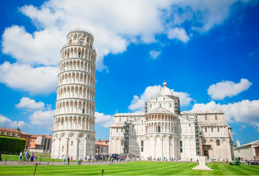 В прекрасном итальянском городе Пиза находится уникальный архитектурный памятник — Пизанская башня, известная во всём мире своей необычной формой. Она наклонена, но уже много веков не падает! 😲 Строительство башни началось в 1173 году. Из-за мягкой почвы здание стало постепенно наклоняться, но строительство не остановили — и в результате появилось настоящее чудо инженерии. 📏 Высота — около 56 метров