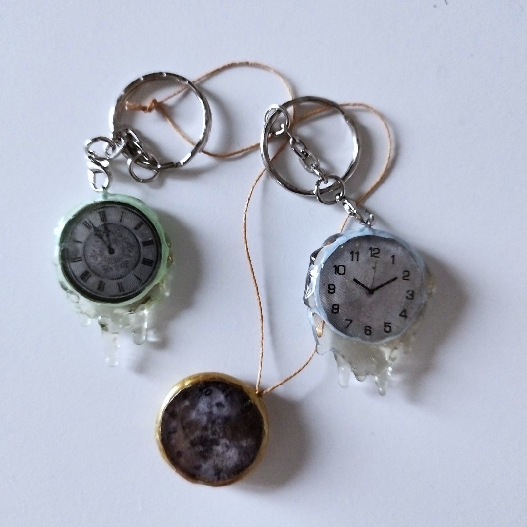 Сделала вот такие интересные игрушечки, подвес, брелок… в машину, для ключей или подвес на елку. Но они не из ваты. Очень увлекла меня смола и я сделала ледяные часики. Мастер класс сняла, но пока не решила, что с ним делать.