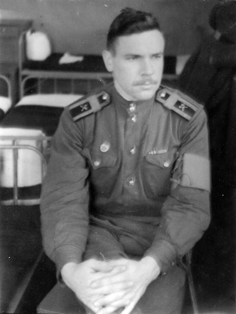 Старший сержант Ленинградского высшего военно-топографического командного училища в гимнастерке со съемными погонами образца 1943 года