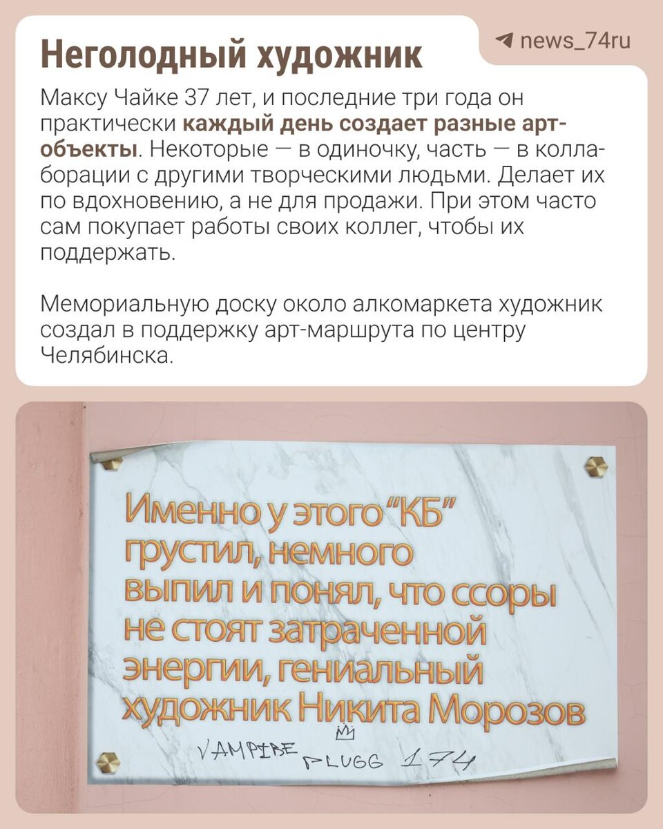 Возле алкомаркета в Челябинске эпатажный художник повесил мемориальную табличку