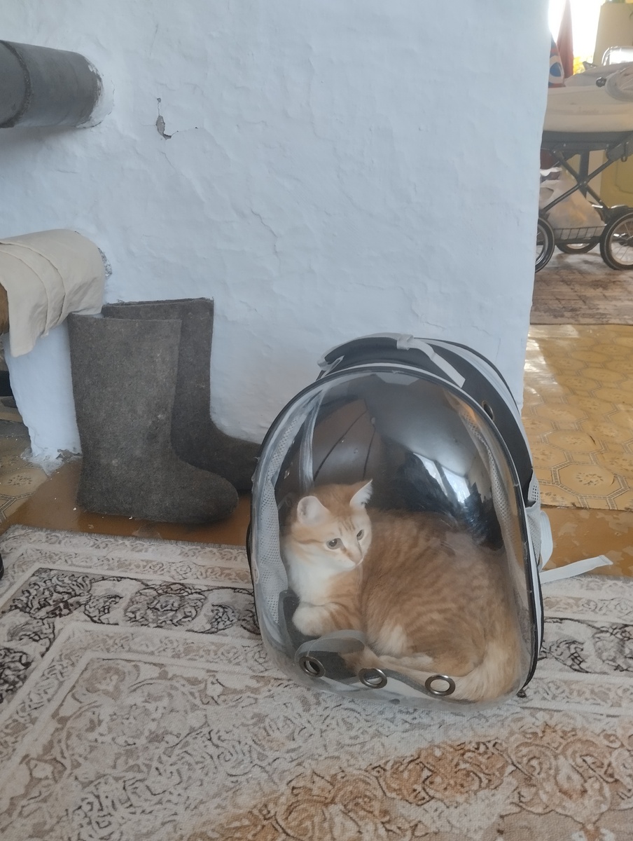 Это очередной котоблог, а не нытьё про импотенцию отечественной киноиндустрии, как можно было бы подумать из-за заголовка. Каждый новый год традиционно мы ходим в баню ездим в деревню к тестю и тёще. В прошлый раз (одын, два, три) мы собрались большой компанией. В этот раз обстоятельства сложились иначе и новый год мы встречали дома, а в деревню поехали позже и только своей семьёй. Ехали на три дня, а значит и кот с нами. Дорогу кот перенёс хорошо, в машине успокоился, поглядывал на нас и дремал. Когда принесли его домой, то разволновался, сидел с красным носом и дикими глазами. Всё-таки год там не бывал. Дома из живности только Муська, мать его. Зато во дворе живут две маленькие собачушки. Никто их не заводил. Одна пришла сама пару месяцев назад, стали подкармливать. Назвали Уша. Спустя пару недель материализовалась вторая. Судя по виду, прямиком из бухенвальда. Пытались прогнать, но она настолько худая, что пролазит в любые щели. Короче, две собаки теперь у них. Уша и Муша живут в по