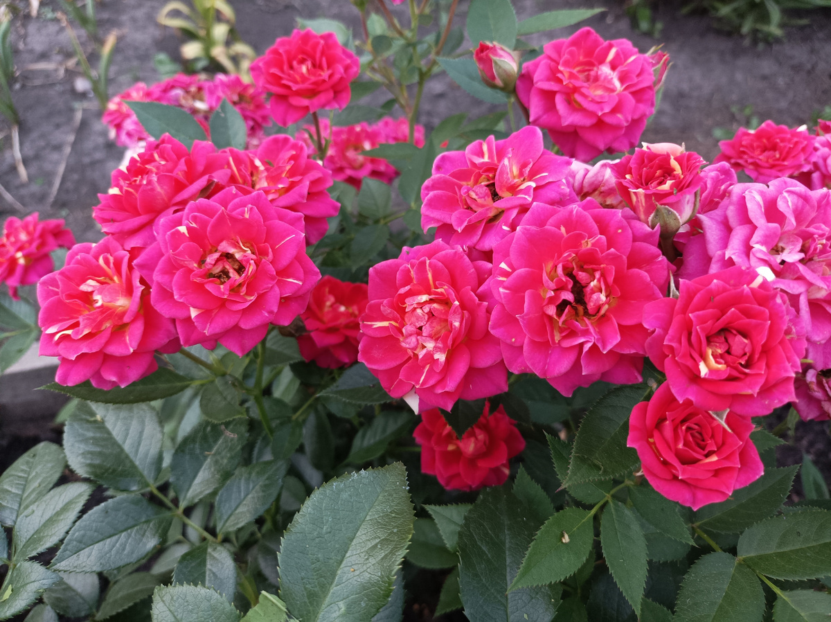Всем привет, мои дорогие читатели, уже в новом наступившем 2026 году! Сегодня я хочу вам рассказать про маленькую принцессу своего сада, розочку, впервые поселившуюся ещё весной 2015 года в качеств привитого куста. А через 2 года (с весны 2017 г) в моем саду уже рос дочерний кустик из черенка. Все последующие фото в статье КС куста в разные годы. Знакомьтесь: Это спорт сорта Clementine, относится к миниатюрным розам. Уже с первого года меня привлекла интересная расцветка этого сорта. Она яркая, красная с желтыми полосками или штрихами. Иногда могут быть наполовину или полностью желтые цветки. Иногда полностью красные. Никогда не угадаешь, какой распустится последующий цветок. Розочка с сюрпризом! Зацветает в 20-х числах июня, наряду с другими розами по соседству. Цветет розочка крупными кистями мелких цветочков диаметром 4-5 см. Распускаются из округлых бутонов в махровые аккуратные цветки, кончики лепестков заостренные. Цветки хорошо держат дождь и солнце, длительное время не теряю