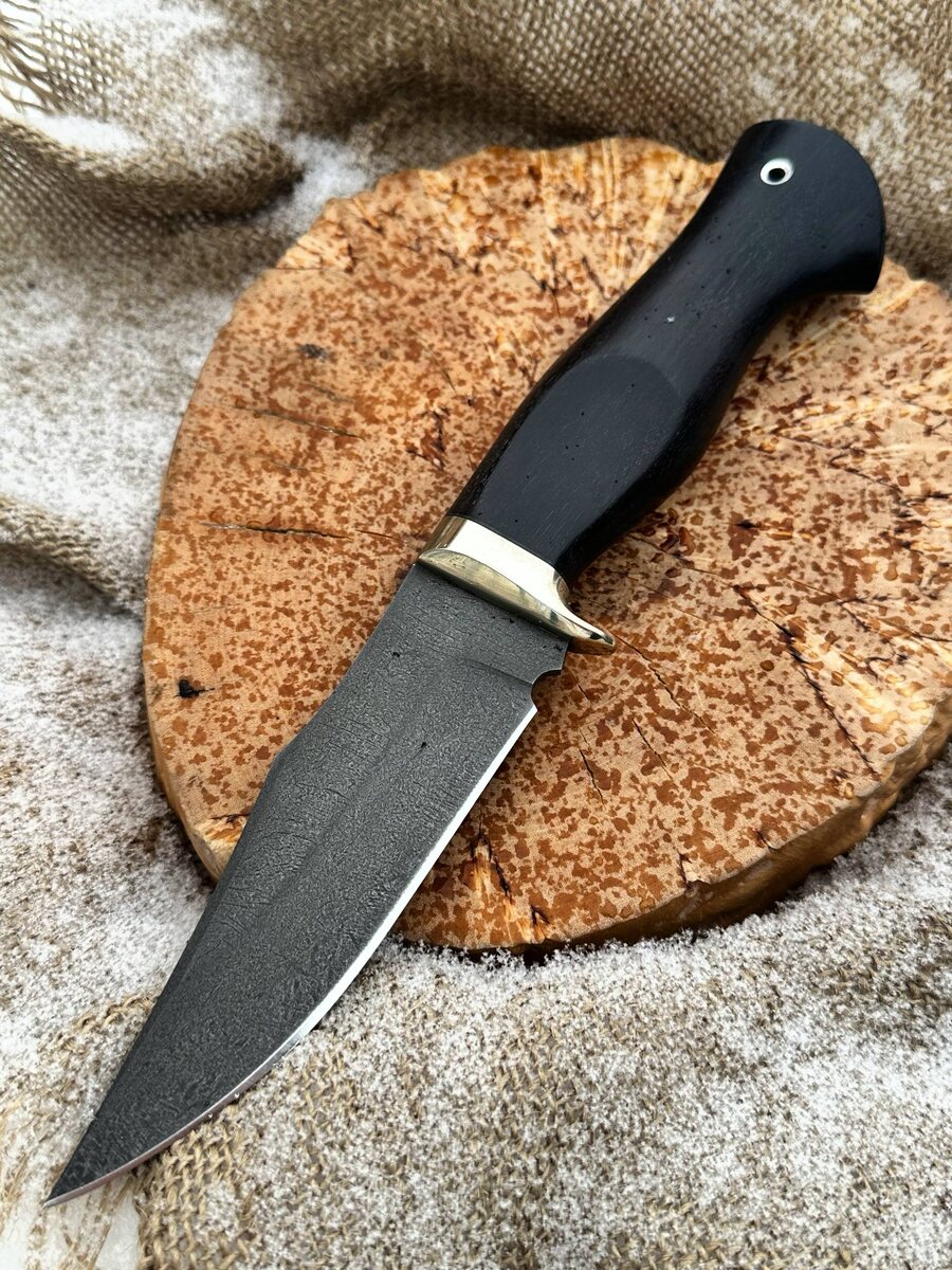 Сталь прочная на излом, долго держит заточку и агрессивный рез. Рукоять на ноже выполнена из черного граба . Нож заточен в бритву. Твердость клинка (HRC): 61-62 Цена за нож: 9.640 рублей, со скидкой: 7.000 рублей. В комплекте идут ножны из натуральной кожи и черная шкатулка. Можем сделать формованные ножны +8000 рублей. Для заказа писать на @Nazarklinokbot или по тел +79101343831 WhatsApp/Viber