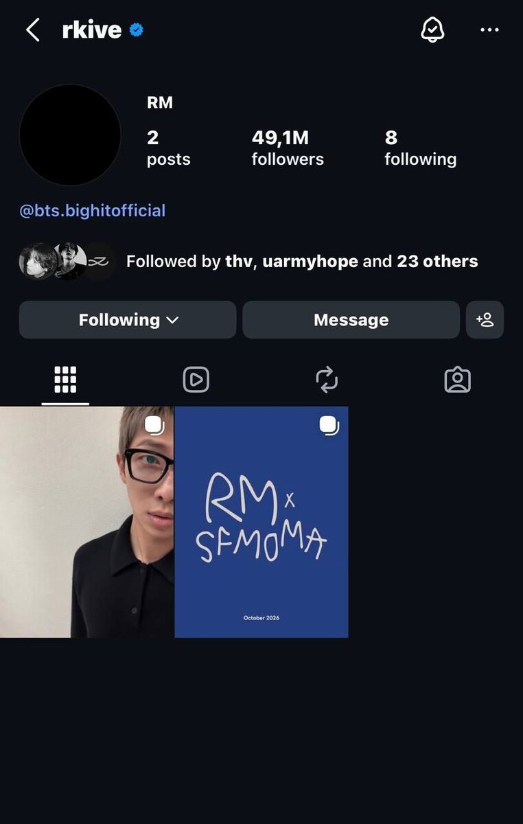 Намджун в своем Instagram* удалил фото профиля и скрыл/удалил многие посты.
