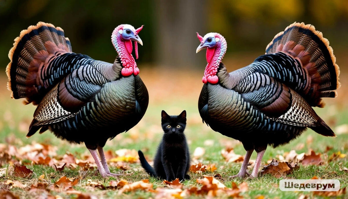 Моментальная пирамида из индюков выросла мгновенно! Хохочущая братия за плетнем не успела опомниться, как перед ними оказалось грозное, с раздутой шеей, встопорщенными, какими-то надутыми перьями и ярко красной головой.