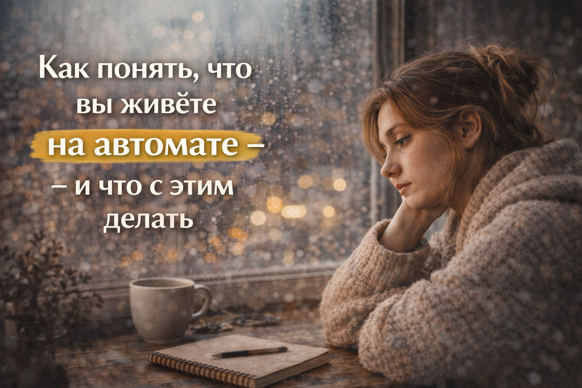 Иногда это выглядит вполне прилично: работа идёт, дела делаются, сообщения отвечаются, планы строятся. Снаружи — “нормальная жизнь”. А внутри ощущение странное: как будто вас в этой жизни нет. День прошёл — и вы не помните, чем он был. Неделя пролетела — и не было ни одного момента, который реально прожился. Это и есть жизнь на автомате. Не лень, не слабость и не “я сломался”. Чаще всего — способ психики экономить силы, когда их мало. Почему мы вообще включаем автопилот Автопилот появляется, когда слишком много нагрузки и слишком мало восстановления. Психике проще “проехать день”, чем прожить его. Так она защищается от перегруза, тревоги, боли, конфликтов, усталости. Иногда это временно — сложный период, дедлайны, переезды, маленький ребёнок, проблемы. А иногда автопилот становится привычкой: вы уже не замечаете, что живёте в режиме “надо”. 7 признаков, что вы на автомате 1) Дни сливаются в один Вы помните, что работали, куда-то ездили, с кем-то говорили — но без деталей. Как будто жи