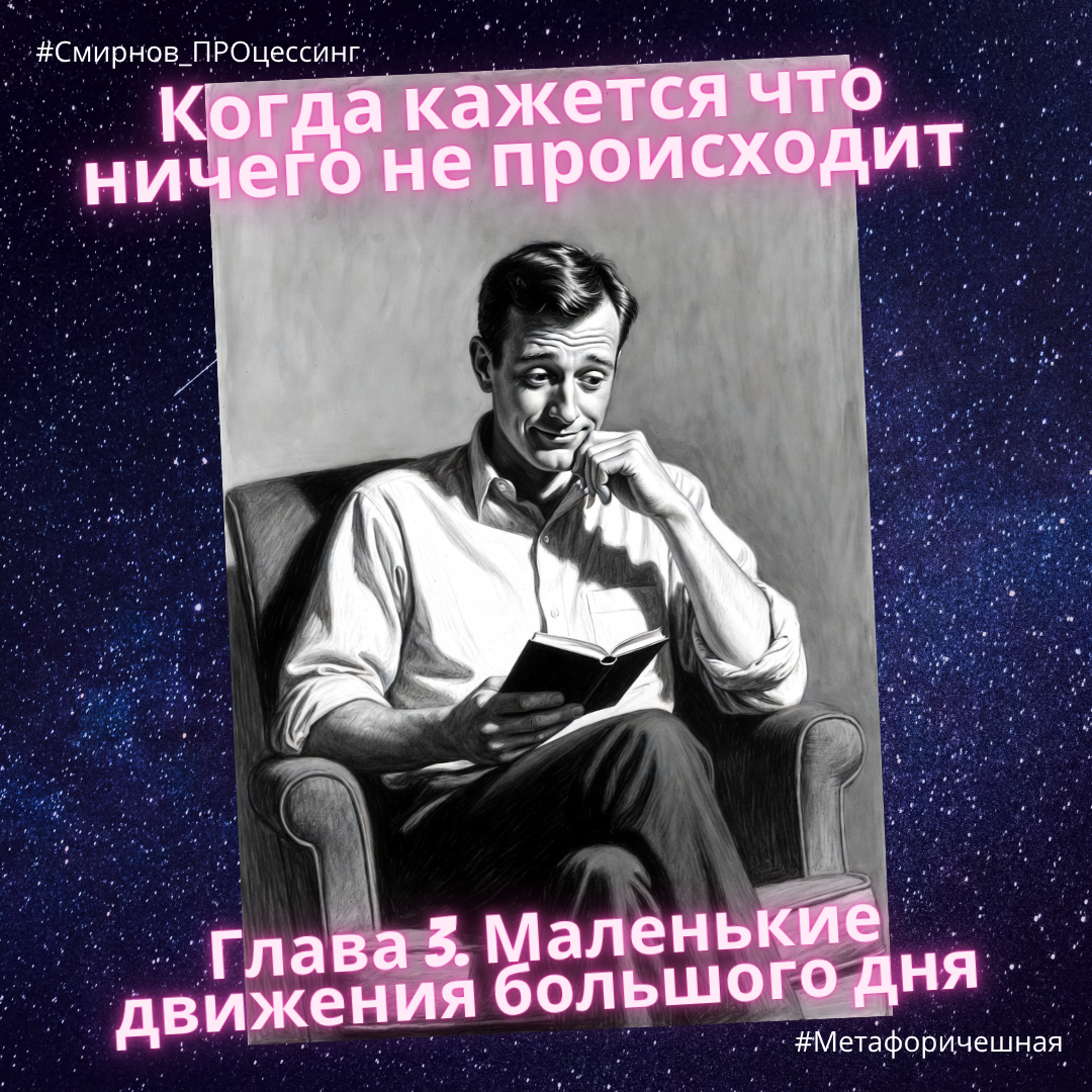 11.01.2026 #Метафоричешная Глава 3 Маленькие движения большого дня Тим вошёл в кабинет Луки немного растерянным. Он выглядел так, будто совершил нечто важное — но сам ещё не понял, что именно. — Ты сегодня какой-то… задумчивый, — заметил Лука, наливая чай.