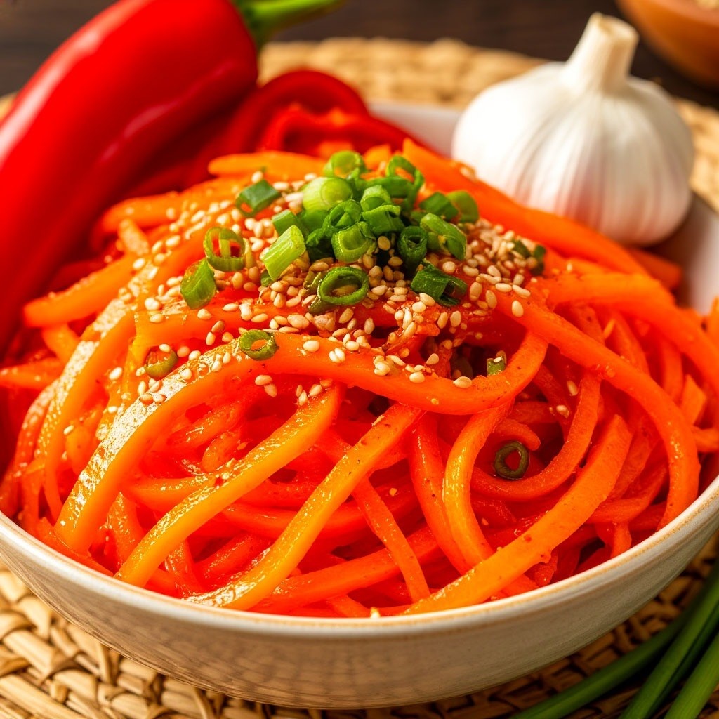 Этот острый, пикантный салат давно перестал быть экзотикой и прочно обосновался на наших праздничных и повседневных столах. Его секрет не в сложных ингредиентах, а в понимании простых химических процессов. Главный из них правильная нарезка. Морковь нужно натирать на специальной тёрке для корейской моркови, которая даёт длинные, тонкие соломки. Это не просто эстетика: такая форма максимально увеличивает площадь контакта с приправой и позволяет маринаду проникнуть глубоко. Основа вкуса это сочетание кислоты, горечи, сладости и умами. Кислоту даёт уксус, лучше 9% столовый. Горечь и аромат черный и красный молотый перец, кориандр. Сладость сахар и сама морковь. А за волшебный вкус «умами», глубину, отвечает глутамат натрия. Не стоит его бояться в разумных дозах это естественный усилитель вкуса, который есть в томатах, пармезане, грибах. Его можно заменить щепоткой молотых сушёных грибов. После того как морковь натёрта, её нужно обязательно помять руками с солью и сахаром, чтобы она дала с