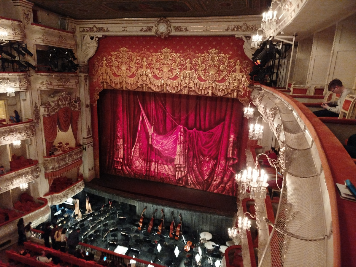 Меня в этой постановке очень поразило, что полномасштабно используются современные спецэффекты и мультимедийные технологии. Опускается прозрачный занавес на который проецируется небо, и сказочный Конек с Иваном летят в воздушном пространстве. А когда действие происходит в подводном царстве, то зритель погружается в сказочный подводный мир с медузами, рыбками и морскими коньками. Внучка там даже разглядела золотую рыбку.