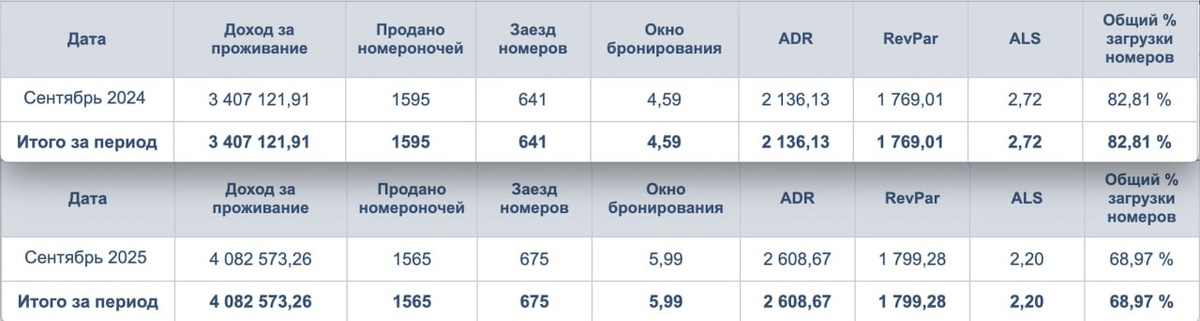 Итоги сентября 2025 Загрузка в текущем году ниже на 14%. Это продолжение тенденции возрастающей конкуренции при недостаточном спросе. А также, мы пересмотрели цены, не уходя в демпинг, а включив в них налоговую нагрузку. При этом, отмечу, не смотря на загрузку, ежедневный доход RevPar вырос на 30 руб, но это скорее погрешность. А сама месячная выручка приросла на 675 тыс руб. Выручка ничего не значит - важно смотреть в саму прибыль по итогам месяца. И если сравнить 2024 и 2025 годы, то картина следующая: 629 553.02 руб и 758 415.24 руб соответственно. То есть прибыль стала больше за год на 128862 руб. Какие выводы из этого я делаю. 1. Расти в количестве квартир становиться неразумно. 2. Увеличение маржинальности и среднего чека роняет загрузку, но прибыль при этом растет. Какие дальнейшие шаги мы предпримем? Будем расширять перечень партнеров, чтобы сделать наше предложение для гостей еще более интересным. Оставляем в работе только самые выдающиеся, дорогие, интересные квартиры